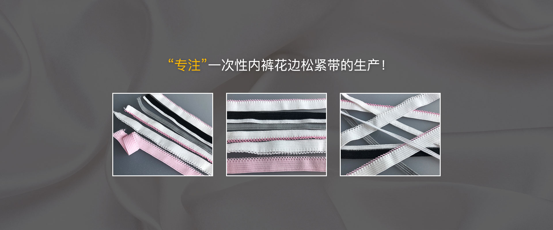 生產(chǎn)一次性?xún)?nèi)褲專(zhuān)用花邊松緊帶、平面松緊帶,服裝松緊帶,織帶等產(chǎn)品